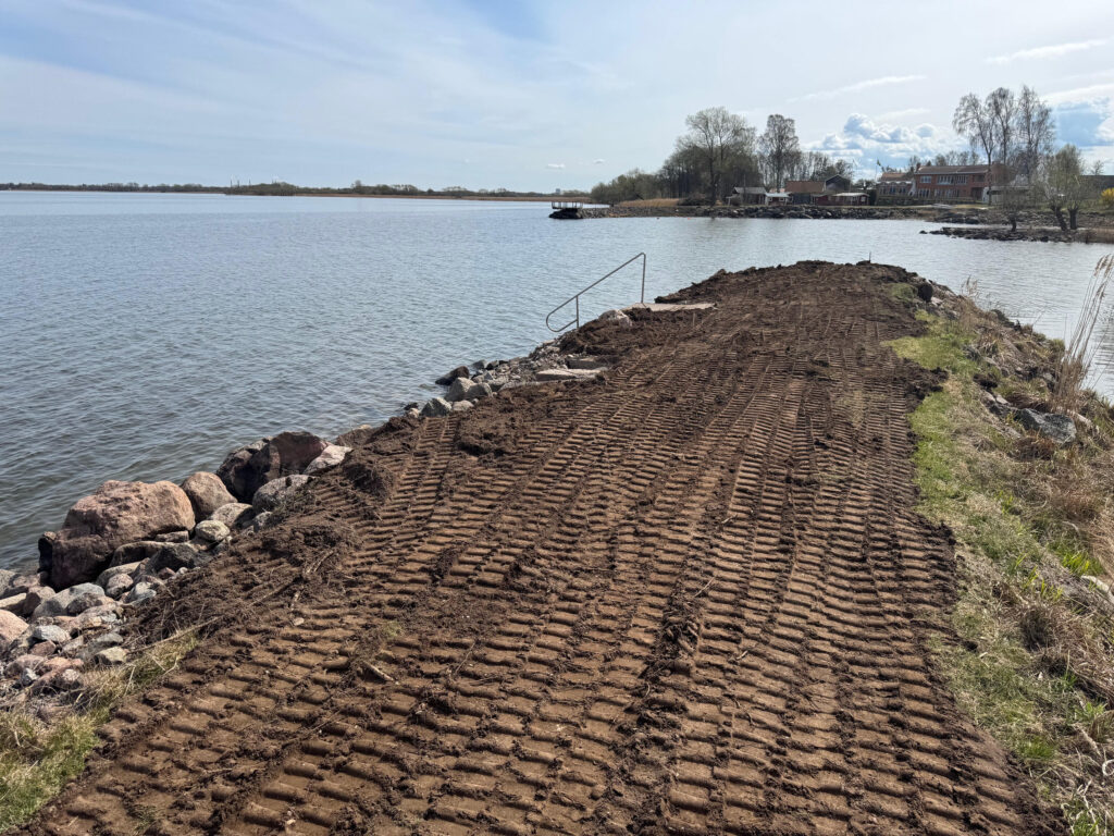 Piren har fått grus och matjord men behöver en ansiktslyftning 🌊